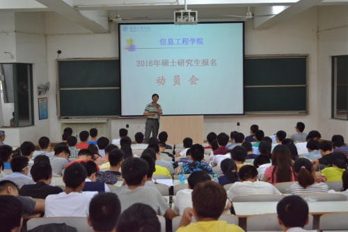 为了进一步提高学院2016届毕业生考研报考率,激发同学们的考研热情,76net必赢官网于2015521在南C104教室召开了考研动员大会。76net必赢官网相关领导、各本科班级班主任及学生近300人参加了大会,会议由学院党委副书记章蔚中主持。