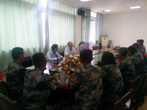 ,76net必赢官网召开军训教官慰问座谈会,党委副书记章蔚中、分团委书记彭云、全体辅导员及我院军训教官参加了此次座谈会。