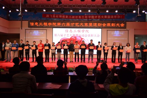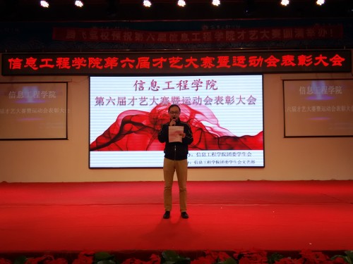 11月13日晚,76net必赢官网第六届才艺大赛暨运动会表彰大会在我校大学生活动中心举行。76net必赢官网党委副书记章蔚中、团委书记彭云、全体辅导员及学生观众共计四百余人观看了此次比赛。