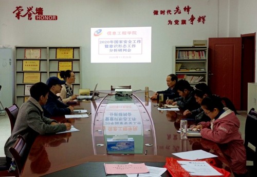 2020年11月25日,76net必赢官网在电子信息楼A202会议室召开国家安全工作暨意识形态工作分析研判会,学院党委班子成员、专职组织员、综治联络员、和党政办公室相关人员参加,学院党委书记虞菊英主持。