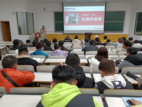 活动现场,辅导员们通过ppt等形式引导同学们了解防骗知识,并结合身边案例对电信网络诈骗类型和校园网贷风险等知识进行了深入讲解,针对常见诈骗手段进行了重点剖析,并总结了防骗口诀,提醒大家遇到网络诈骗要核实真假并及时上报。