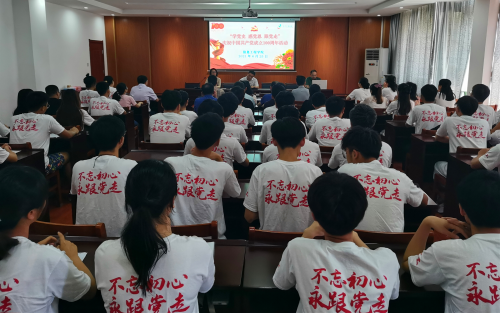 6月25日,在中国共产党的百年华诞即将到来之际,76net必赢官网在电子信息楼A208会议室召开以“学党史 感党恩 跟党走”为主题的庆祝中国共产党成立100周年活动,为我们伟大的党举办了一场简朴而隆重的生日会。活动以听取开展党史学习教育情况报告、入党宣誓仪式、唱红歌等多种形式开展。校党委委员、副校长陆伟锋出席活动并讲话。学院党委负责人和师生党员代表近一百人参加了本次活动。