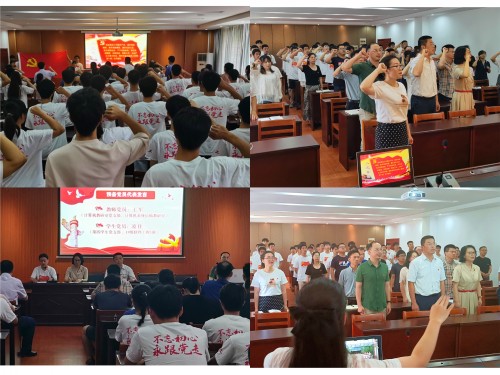 宣誓仪式中,全体党员高唱《国际歌》,面向鲜艳的中国共产党党旗庄严宣誓。预备党员教师代表王军和学生代表凌佳分别作了发言。学院党委负责人领学了《中国共产党普通高等学校基层组织工作条例》并讲授了题为《学好百年党史,培育时代新人》的专题党课,从“中国共产党成立的背景和经过、中国共产党领导革命夺取政权的浴血奋战史、中国共产党执掌政权的历史,为育时代新人培根铸魂”四个方面进行了阐述。最后,庆祝活动在全体师生党员合唱《唱支山歌给党听》中圆满结束。(文/李佳娟 图/黎维 温天忆)