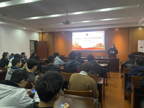 活动中,辅导员李家老师解释了“扫黑除恶,扫黄打非”的重要意义,对与会同学开展了“扫黑除恶,扫黄打非”专项斗争的工作布置。随后,田秀梅介绍了十类违法犯罪活动的打击重点,以PPT形式展示了各地开展“扫黑除恶”专项活动的宣传现场和最终成果,使同学们更好了解“扫黑除恶,扫黄打非”对社会的意义和良好作用。