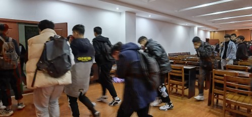 会上,田秀梅向同学们列举了近年来一系列严重的高校火灾案例,分析了校园中常见消防隐患、消防灾害诱因,并着重讲解了各类场景下消防器材的正确使用方式与注意事项。随后,李家文为同学们讲述了实验室漏水漏电、化学物品泄露的应急处理方式。活动最后,全体与会师生学模拟了火灾初期利用灭火器等消防设施进行扑救和人员有序疏散逃生的情景。