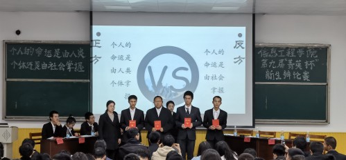 本次活动从初赛、复赛、半决赛到决赛历时一个多月,21级计算机类1班与21级计算机类3班脱颖而出进入决赛。比赛伊始,双方就“个人的命运是由人类个体掌握还是由社会掌握”这一辩题展开激烈的辩论。在比赛过程中,双方辩手针锋相对,唇枪舌剑,你来我往,却又不失风度,侃侃而谈,赢得观众阵阵掌声,现场气氛迅速升温。经过激烈的对抗,比赛反方21级计算机类1班代表队以获胜而告终。最后,阮晶晶对本次辩论赛做出点评,对辩手们流畅伶俐的表达和从容自若的辩风表示肯定,并表示同学们要抓住锻炼机会,练就一身本领。