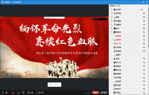 革命先烈英雄故事云诵读活动。4月4日,学院团委开展了以“弘扬革命精神,传承红色基因”为主题的革命先烈英雄故事云诵读活动,团学干部80余人参加了此次活动。清平廉洁、对党忠诚的方志敏,坚贞不屈、视死如归的赵一曼,百折不挠、精忠报国的杨靖宇,以鲜血唤醒民众的青年先锋赵醒侬,无畏牺牲、英勇战斗的刘传文,胆识过人、为党奋不顾身的杨根思,一个个伟大的革命烈士形象随着团干部们的深情讲述而生动、丰富起来。现场同学认真聆听,深受感动,表示要传承好革命先辈红色精神,继承发扬革命精神,争做优秀大学生。