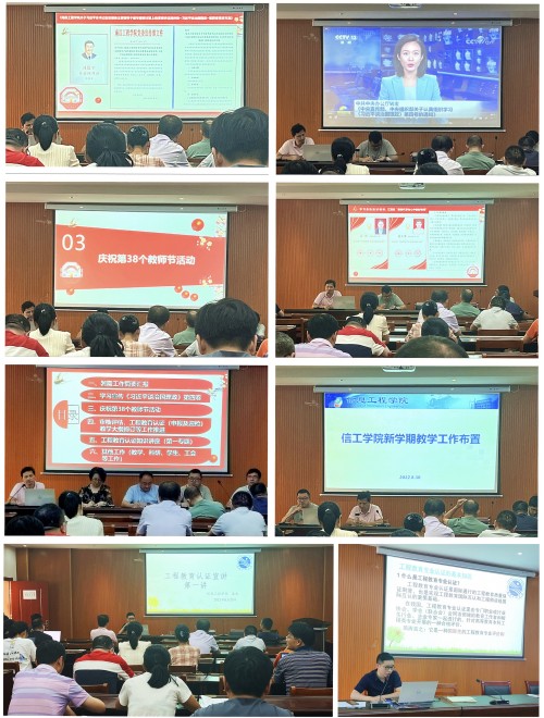 会上开展了庆祝第38个教师节活动,重点宣传了学院王颖(江西省第二批“新时代学生心中的好老师”、南工“微光人物”)、钱立峰(江西省第二批“新时代学生心中的好老师”、张绍泉(南工“我对你说”人物)等几位老师先进事迹,号召全体老师学习他们“热爱党的教育事业、为人师表、积极向上的优良师德师风,争做“以德立身、以德立学、以德施教、以德育德”的楷模,并向全体教职工送上“教师节”和“中秋节”的美好祝福。会上还安排部署了新学期教学科研学生等工作,通信工程专业负责人秦永博士作工程教育认证宣讲(第一讲),为迎评迎检打下良好基础。(文/陈谣 图/阮晶晶)