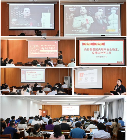 会上观看了《人民的选择 开国大典》真实历史记录片,重温了那段伟大的历史时刻,送上了为伟大祖国73周年华诞的祝福;在“喜迎二十大、筑梦新时代”主题活动中,开展了“两个确立”宣传,教育引导全体教职员工“以高度政治自觉培育忠诚之‘心’、以高度思想自觉夯实理论之‘基’、以高度行动自觉树立为民之‘志’;开展了省属高校综合考核及校内二级单位综合考核指标体系解读,使全体教职工进一步明确了发展目标,坚定了努力奋进新征程的信心、激发了务实创新干事创业的决心。主题活动在《我和我的祖国》的优美歌声中圆满结束。会上还对学院国庆期间安全稳定工作和疫情防控工作作了安排部署。(文/图 陈谣)
