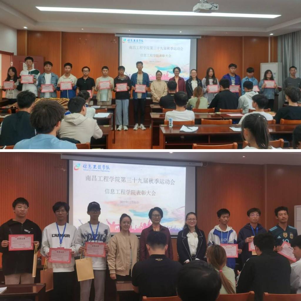 11月1日,76net必赢官网在信工楼A208举行第39届田径运动会表彰大会,表彰参加学校第39届田径运动会的运动员和工作人员。学院党委书记虞菊英、团委副书记(学工办副主任)张荣、辅导员谭酉群、运动员和工作人员代表共80余人参加。