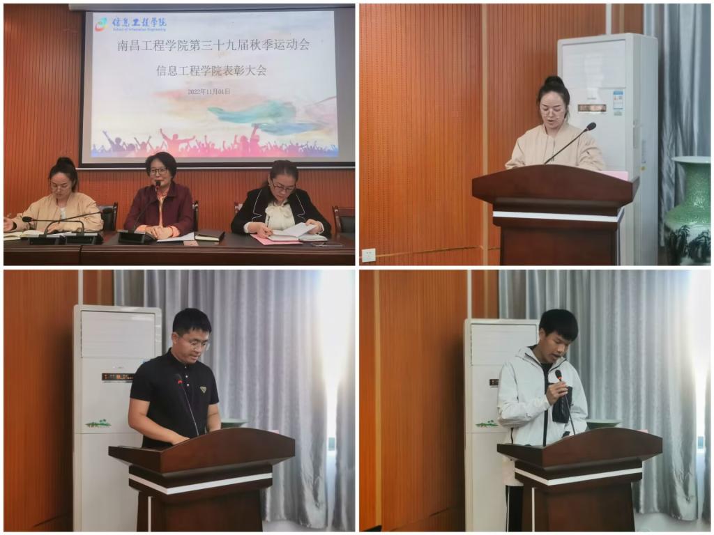 谭酉群、学院体育中心曹伯瑞和运动员代表肖嘉平发言表示,三天时间、一场盛会、两个团队,点燃了信工之火、凝聚了信工力量、展现了信工风采,信工学子为学院献出自己的一份力量,展现出同舟共济,团结一致的精神,同时也希望同学们将体育赛场的精神融入学习和生活中,收获阳光。