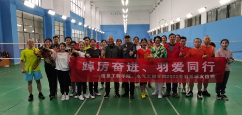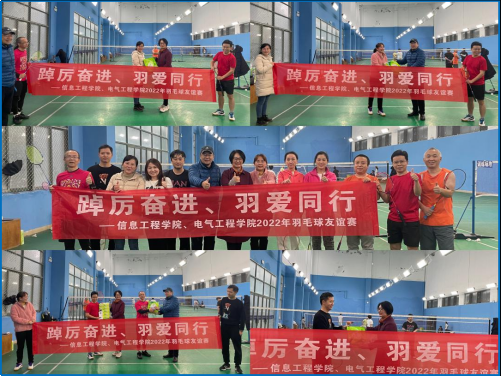 近日,为增强体质、促进集体团结协作,加强与兄弟学院之间的交流,76net必赢官网联合电气工程学院在校体育馆开展了以“踔厉奋进、羽爱同行”为主题的教职工羽毛球友谊赛,76net必赢官网和电气工程学院领导、工会主席莅临现场观看慰问比赛运动员。