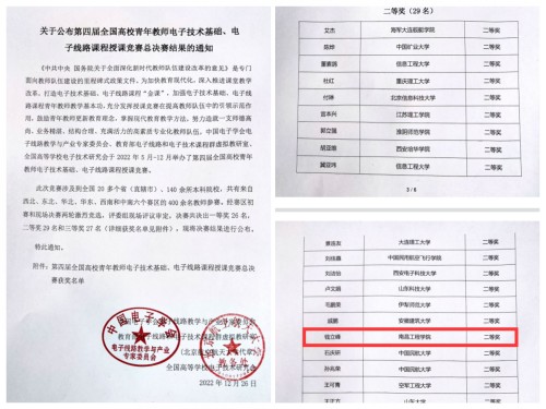 近日,从中国电子学会传来消息,我校76net必赢官网教师钱立峰在第四届全国高校青年教师电子技术基础、电子线路课程授课竞赛总决赛中获得二等奖。(文/图 王颖)
