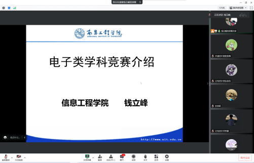 钱立峰老师是2019年度“新时代赣鄱先锋”、 第二批江西省“新时代学生心中的好老师”。他以《电子类学科竞赛介绍》为题,通过介绍学科竞赛的特点和类别,整合课外实践,鼓励同学们通过参与不同的学科竞赛激发自己的专业学习兴趣,理论联系实际,提高自身创新精神和实践能力。