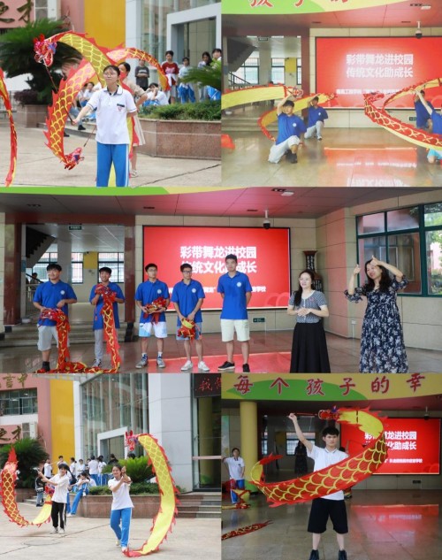 活动过程中志愿者首先展示计算机程序设计,通过书写的方式与聋哑儿童进行交流、分享和耐心指导,每名聋哑儿童都沉浸在学习的乐趣中。然后指导聋哑儿童们一起玩同学们自制的智能小车。最后进行彩带舞龙表演,并手把手教聋哑儿童们学习彩带龙。