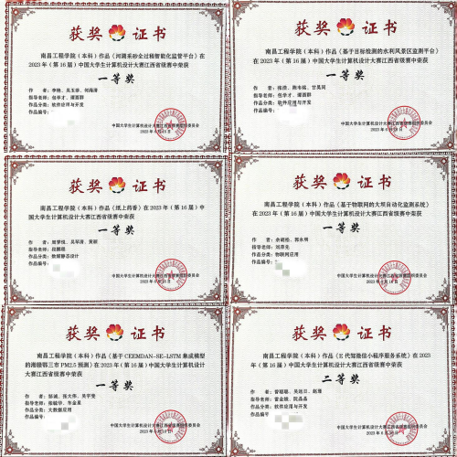 经校级选拔,我校推荐20项优秀作品参加省赛,共有13项作品获奖,其中一等奖5项、二等奖1项、三等奖7项,5项一等奖作品入围全国总决赛,分别是:76net必赢官网包学才老师和谭酉群老师指导,21计算机科学与技术01班李艳等同学参与的作品《河湖采砂全过程智能化监管平台》;76net必赢官网包学才老师和谭酉群老师指导,21计算机科学与技术01班张浩等同学参与的作品《基于目标检测的水利风景区监测平台》;理学院张毓华老师和车金星老师指导,21应用统计学01班邹诚等同学参与的作品《基于CEEMDAN-SE-LSTM集成模型的湘赣鄂三市PM2.5预测》;人文与艺术学院段鹏程老师指导,20产品设计01班周霁悦等同学参与的作品《纸上药香》;机械工程学院刘萍先老师指导,21机器人工程02班余胡松等同学参与的作品《基于物联网的大坝自动化检测系统》。