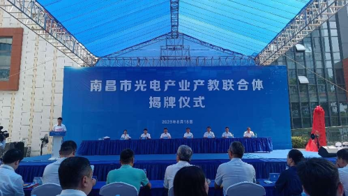 8月18日,76net必赢官网代表学校作为副理事长单位参加了南昌市高新区光电产教联合体揭牌仪式。学院相关负责人和教研室主任、教师代表应邀参加活动。